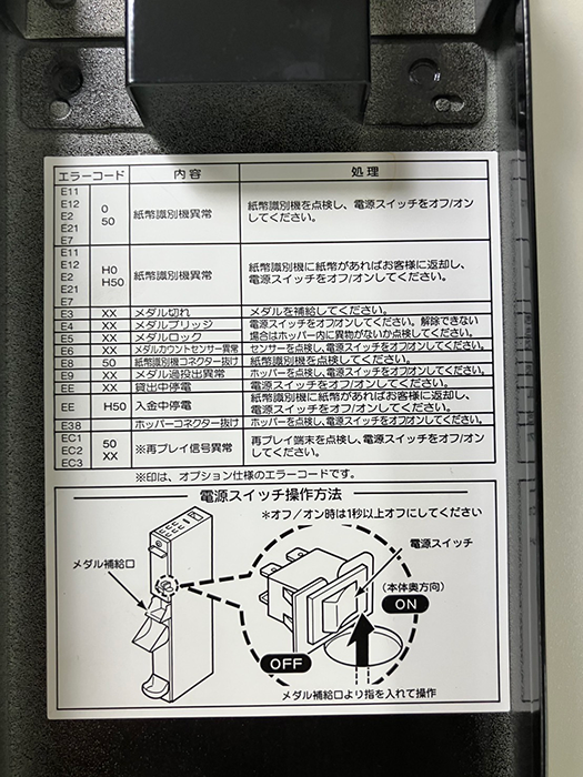 - コイン補給:手動、前面補給
